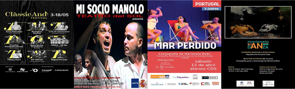 – BOAN-DANZA. República Dominicana . Reactor Antígona. XXIII Encuentro Internacional de Danza, Fragmentos de Junio. Guayaquil. Ecuador (del 21 al 28 de Junio).